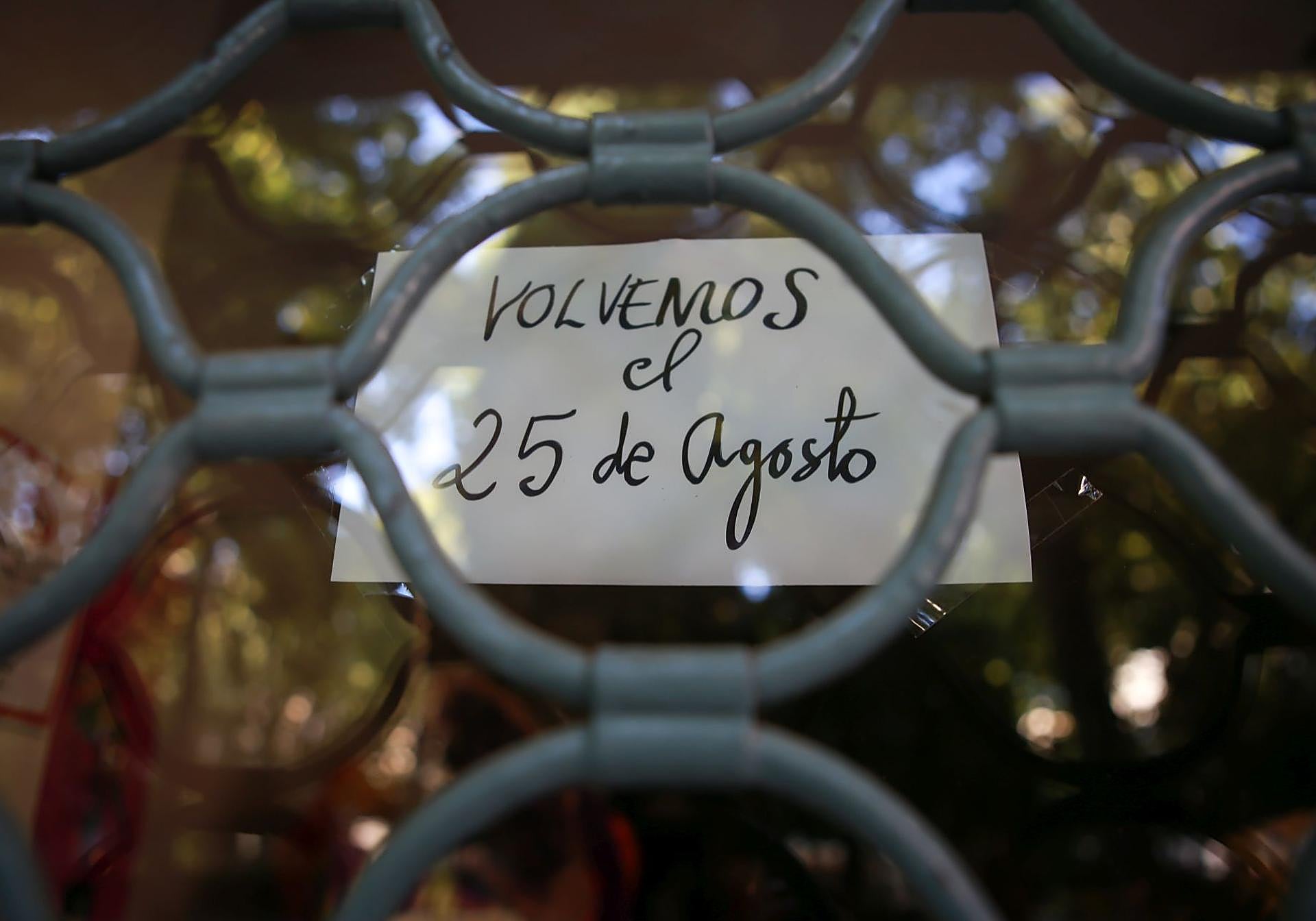 Persianas bajadas y cartelitos de 'volvemos el 18 de agosto'. No todos, desde luego. Algunos supermercados sí han abierto este viernes que parece domingo. ¿Hay clientes? Aparentemente no muchos. Como también lo han hecho buena parte de los negocios que viven del maná de turismo. Este mes es temporada baja en Granada, pero siempre hay algunos visitantes a la sombra de la Alhambra.