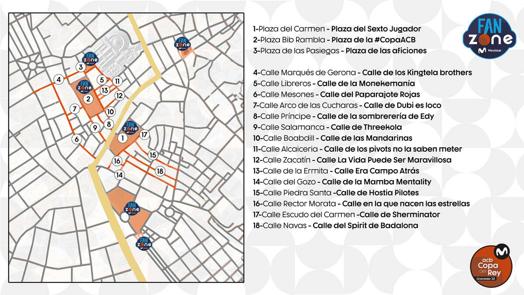 Un total de 18 calles y plazas han perdido durante unos días su nombre original, dejando paso a un nuevo callejero con aroma a baloncesto