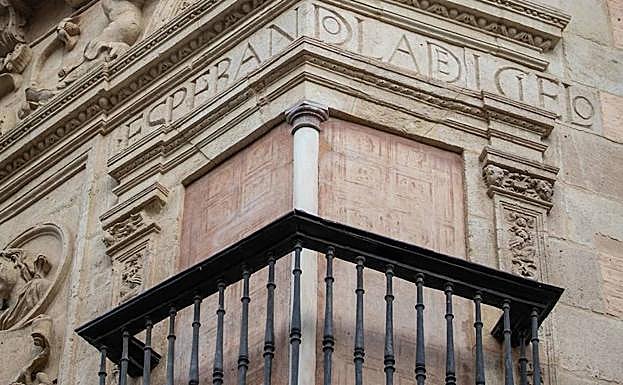 Un detalle en la fachada del Museo Arqueológico llama la atención de los viandantes más curiosos: una balconada tapiada, bajo una inscripción: «Esperándola del cielo»