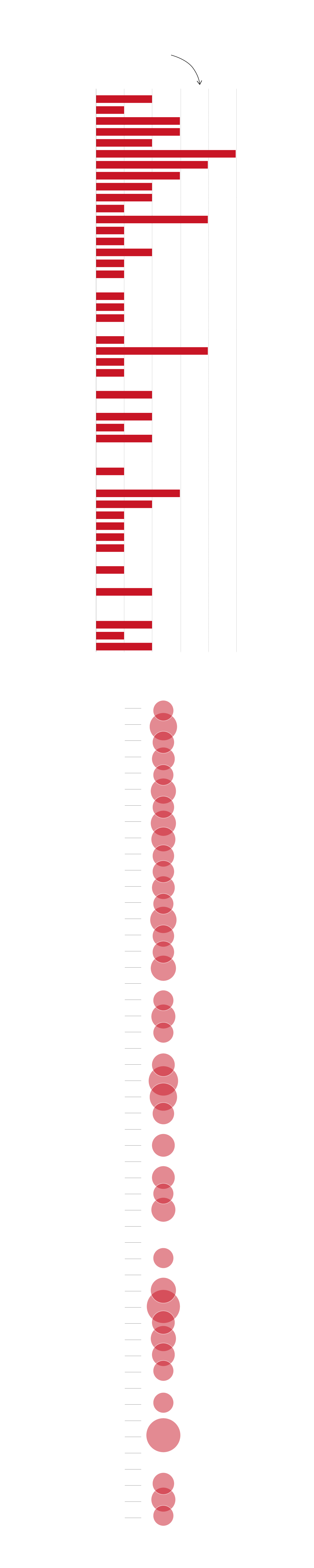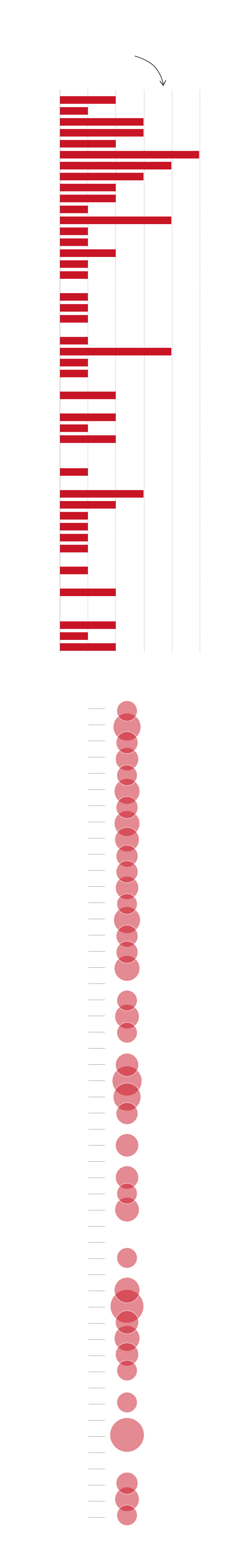 El tamaño del círculo representa la duración del más largo de los episodios