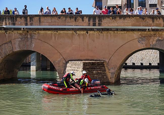 Nadó hasta él en menos de 50 segundos y lo mantuvo a flote hasta que el equipo de rescate llegó en lancha. Entre todos, lo subieron, lo colocaron sobre una tabla y lo acercaron a la ribera, en concreto, a la explanada frente al Puente Romano, a la que se accede desde el Paseo del Salón. Allí esperaba Protección Civil. Nada más recibir al hombre lo trasladaron a una camilla y le pusieron la máscara de oxígeno. «3, 2, 1. ¡Arriba!», gritaron al unísono.