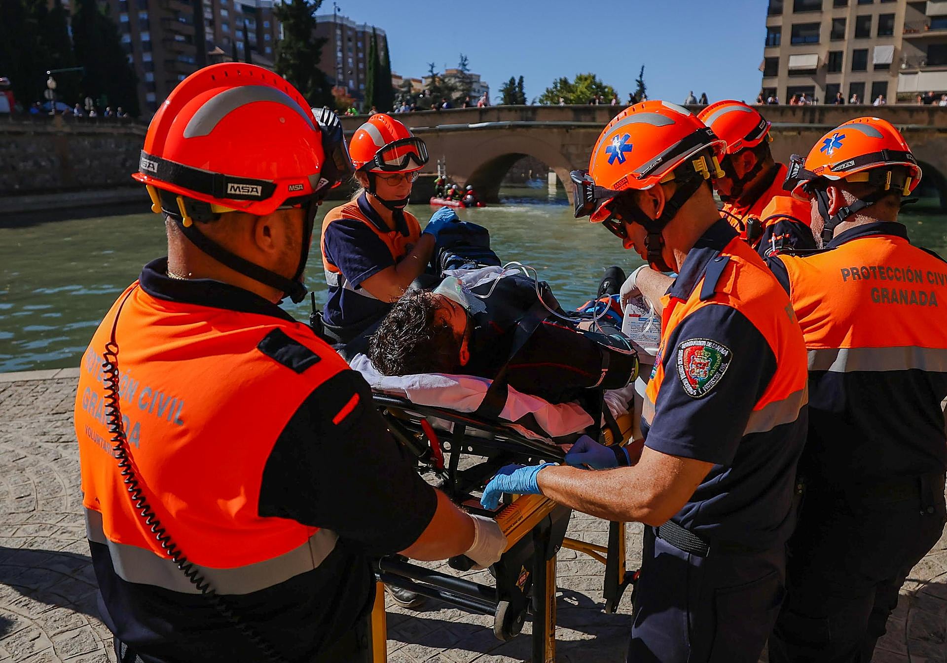 Los equipos de Emergencias entrenan para rescatar a los granadinos en caso de inundación con un simulacro