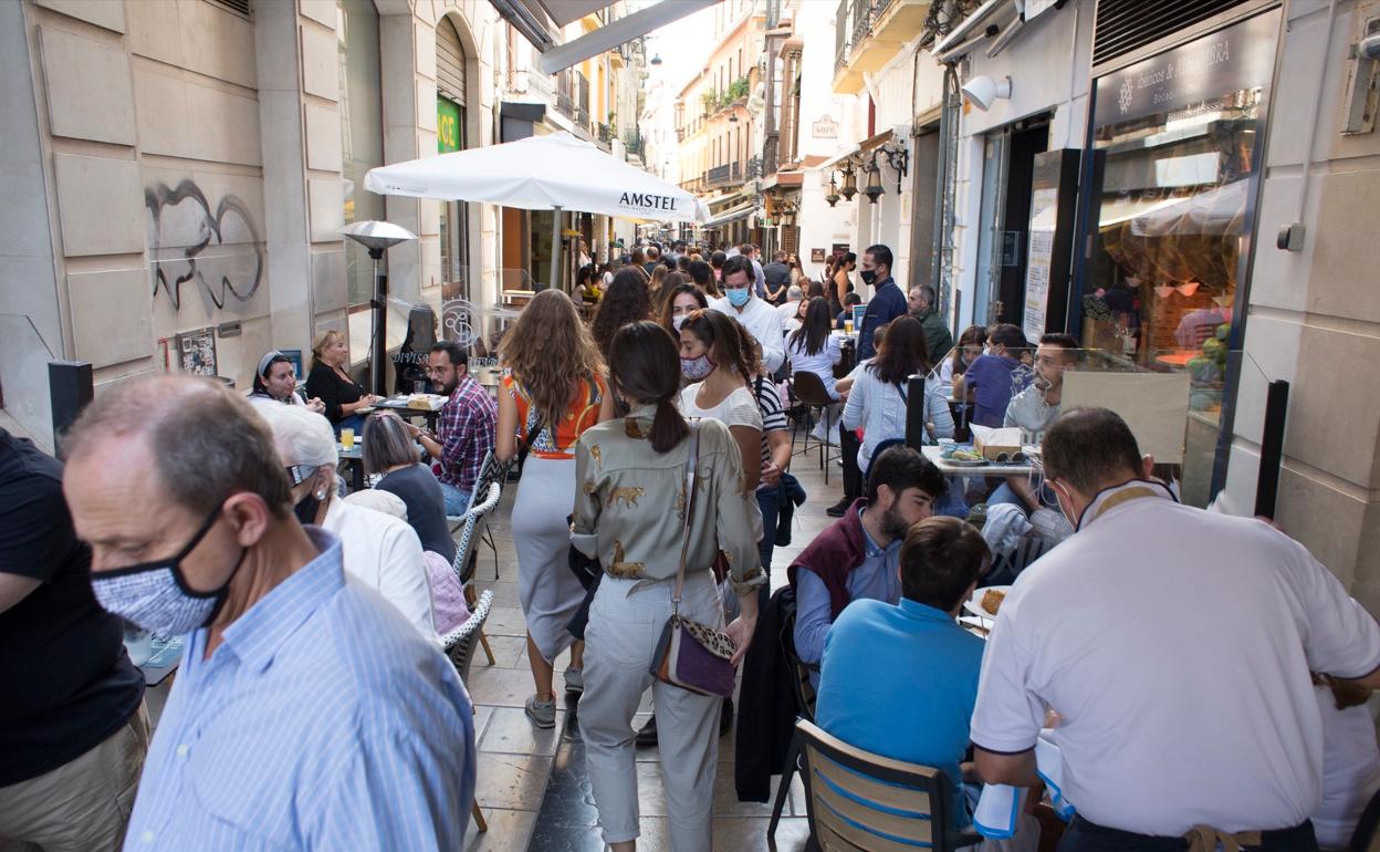 Granada puede presumir este primer día del puente del Pilar de gozar del primer llenazo de visitantes de la pandemia. Con todos sus pros ... y contras. Y con su 50% de aforo para establecimientos hoteleros, bares, terrazas o restaurantes. El buen clima, las ganas de salir de casa y de la propia ciudad ha llenado de sensaciones positivas esta jornada de hoy, que ha dejado imágenes hasta hace un par de meses impensables.