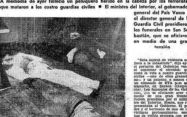 Entierran en Alfacar el cuerpo del guardia civil Miguel Ángel de la Higuera, herido días antes en uno de los más brutales atentados cometidos por ETA: costó la vida a nueve agentes del instituto armado e hirió a 55 personas al explotar cincuenta kilos de goma-2. Sucedió en Madrid.