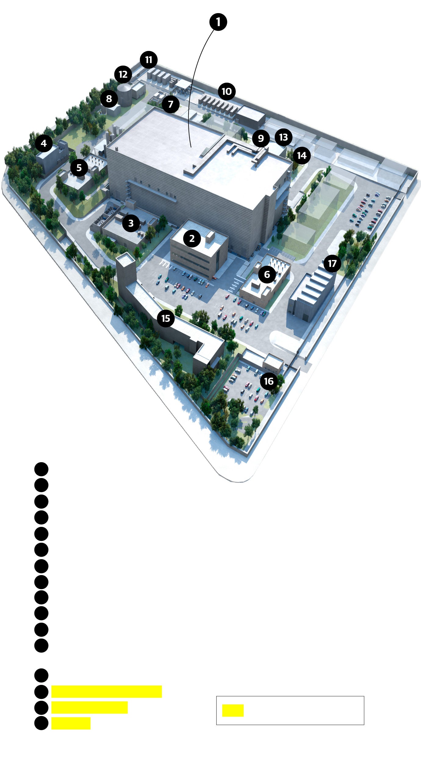En cuanto al resto de edificios proyectados, estarán destinados a acoger sistemas auxiliares al del contenedor principal: el almacén de tratamiento de residuos radiactivos, las torres de refrigeración, las plantas de tratamiento de agua, el módulo de protección contra incendios o el sistema de generación de energía de emergencia, entre otros.
