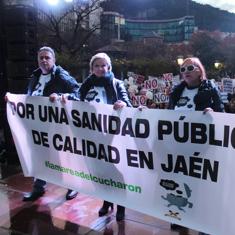 En el acto se han dado cita personas de "muchas ciudades", de colectivos sanitarios de Granada, que luchan contra la fusión hospitalaria y exigen "dos hospitales completos" en esta ciudad, o de Jaén, con especial protagonismo de la Marea del Cucharón, que reclama que se mantenga la cocina del Hospital Doctor Sagaz, además de dar mayor uso a este centro eliminando, a su vez, las "vergonzosas" habitaciones con tres pacientes en el Médico-Quirúrgico.