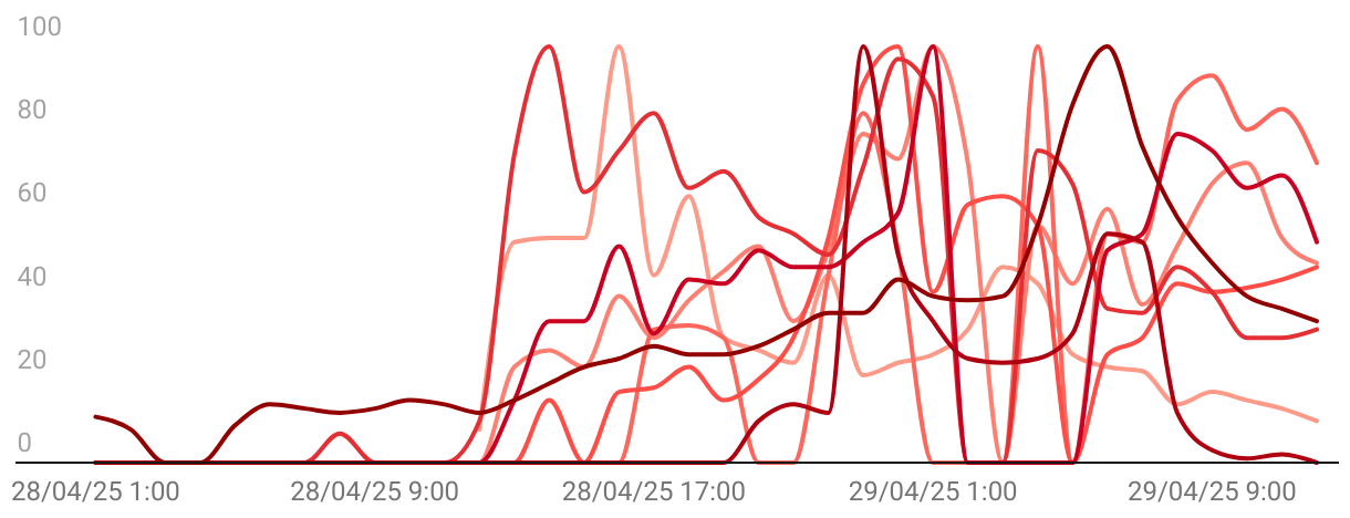 En el otro extremo, ciudades más grandes como Granada, en noveno puesto, Jaén o Jerez de la Frontera, mostraron un interés comparativamente menor, posiblemente por una reacción más tardía en internet debido a la falta de coberura. Esta disparidad en la reacción digital también evidencia cómo el nivel de preocupación no siempre está vinculado al tamaño de la ciudad, sino a factores como la duración del corte, la cobertura informativa local o el acceso a tecnologías alternativas.
