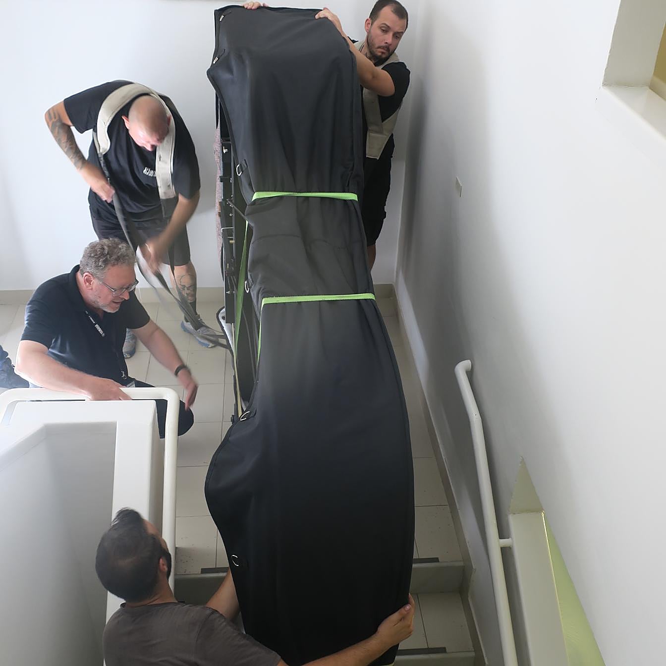 Lo cierto es que gracias a dicho robot se pueden salvar, en la mayoría de los casos, obstáculos que hacen preguntarse a los profanos cómo es posible que un piano se coloque en un determinado sitio. En este sentido, Leonés recuerda un concierto de Wim Mertens en Salobreña, en el que sudaron tinta para poder hacer llegar el piano al patio del castillo, donde tendría lugar la actuación.