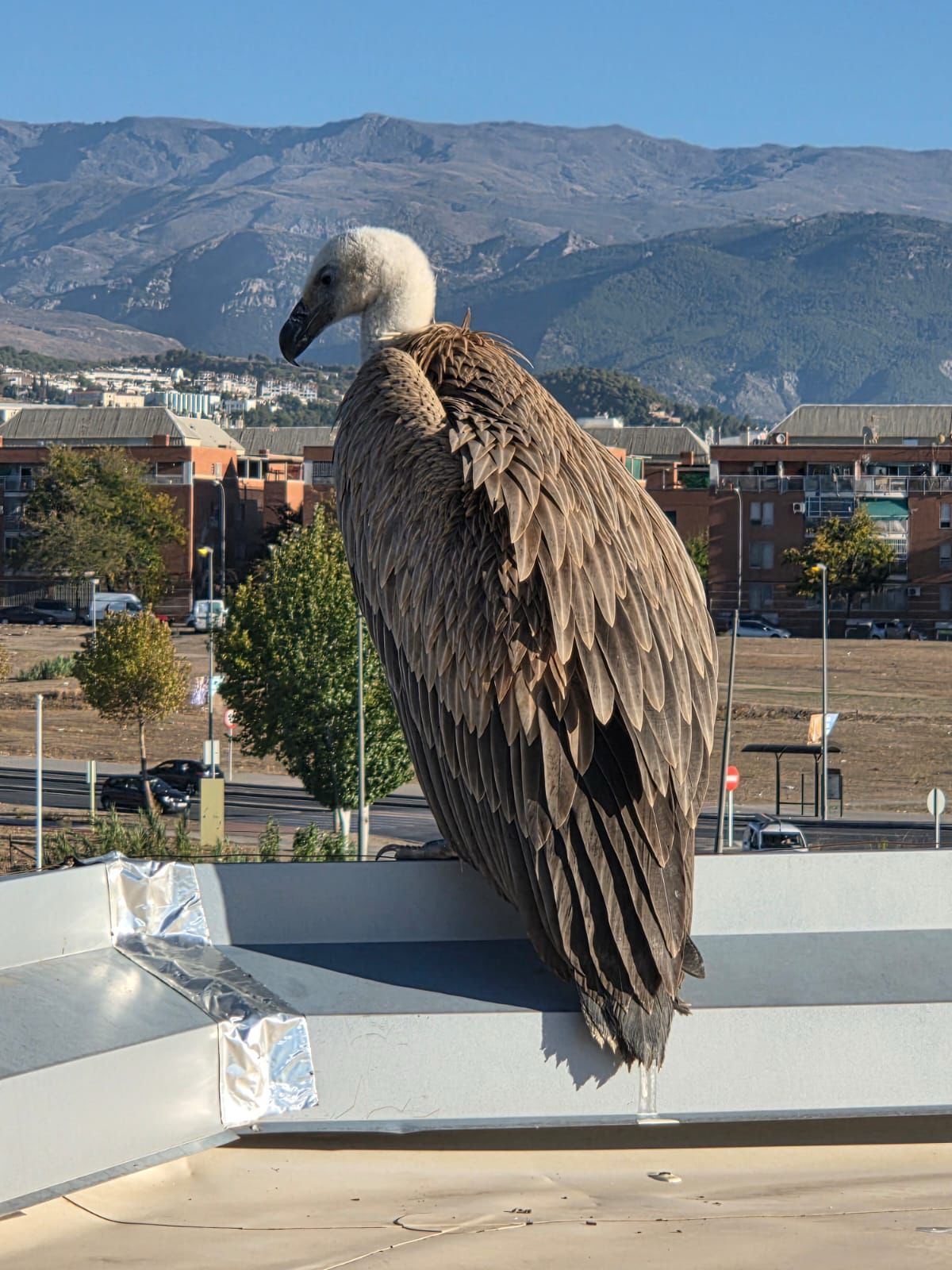 El centro comercial Granaita de Pulianas ha tenido un visitante muy especial esta semana: Un majestuoso buitre leonado que apareció posado en la cubierta de ... la entrada principal. «Es un ejemplar aún polluelo, pero impresionante tenía unos 70 centímetros de altura. El vigilante de seguridad lo vio apoyado en la cubierta de la entrada vimos apoyado en la cubierta de la entrada principal y siguiendo el protocolo llamó a la Policía Local de Pulianas que con ayuda del personal de seguridad de Granaita logró cogerlo con la máxima seguridad, sin hacerle daño», explican desde el centro comercial granadino.