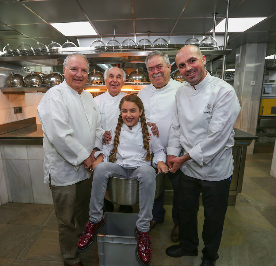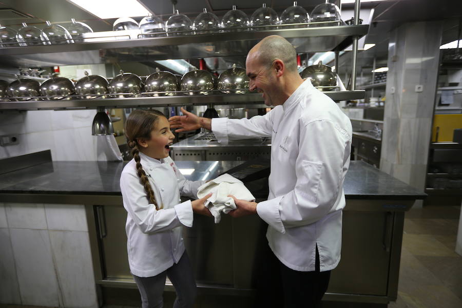 Nada más entrar en la cocina de Ruta del Veleta, Marcos Pedraza saca una chaquetilla de cocina deshilachada, vieja. Es decir, repleta de sabores, éxitos, ... anécdotas, también algún corte doloroso y experimentos que acabaron en el cubo de la basura. «Esta es una de las primeras que vestí en esta cocina», dice el chef del emblemático restaurante, «te la regalo». Esther la recibe con la sonrisa sincera que ha lucido ante millones de espectadores en el programa Masterchef Junior, del que se proclamó ganadora. Tiene diez años, que son más que suficientes para entender la metáfora que encierra el regalo de Marcos: un paso de testigo del presente al futuro de la gastronomía granadina.