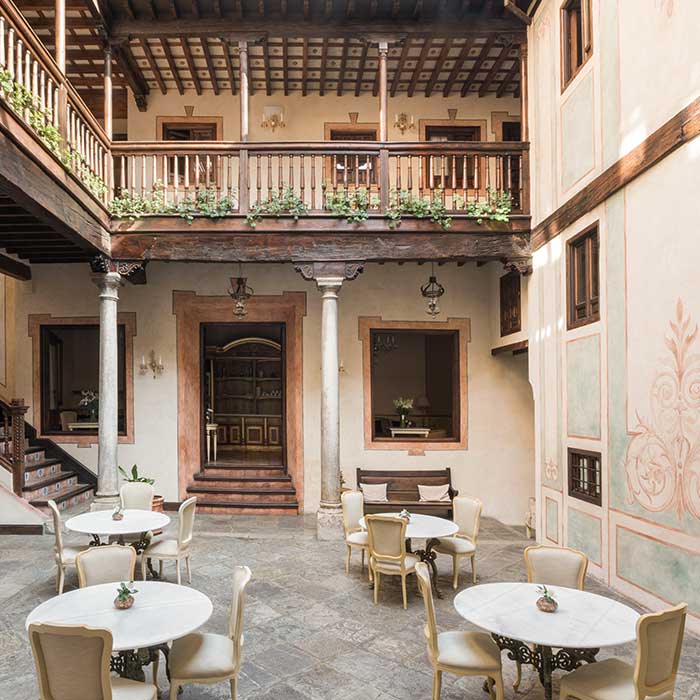 Un palacete del S.XIX protegido y de color amarillo sol es de los mejores hoteles de lujo de Granada. Está un poco alejado del bullicio del centro de la ciudad, pero a tan solo 10 minutos de la Huerta de San Vicente, donde vivió Federico García Lorca. Las habitaciones tienen techos con murales, pisos de mosaicos y carpintería decorativa. En el jardín se encuentra el restaurante que ofrece recetas locales, vinos de Granada e ingredientes del kilómetro 0.