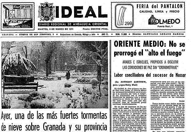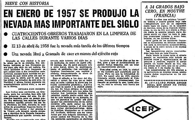 Este periódico titulaba en esa fecha «Noventa minutos de nevada para un paraíso o el infierno», cuyo subtítulo rezaba:«La normalidad en la circulación volvió a lo largo de la jornada y las previsiones apuntan que hoy podría nevar por la mañana en Guadix y Baza. Granada se despierta con una tormenta que deja una provincia bellísima con la red de carreteras colapsada».