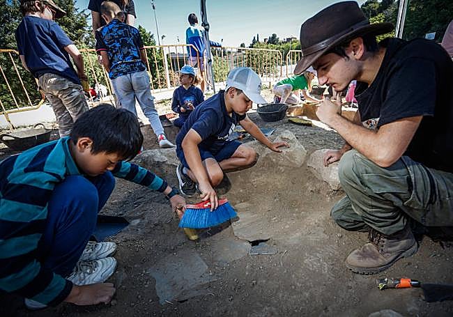 Con solo 10 años, Juan Carlos tiene claro que quiere ser arqueólogo. Al igual que él, su compañera Valentina afirma con disposición que no le ... importa lo mucho que tenga que estudiar, que es su sueño. Lo mismo sucede también con otros tantos alumnos de cuarto curso del colegio Cristo de la Yedra. Esta motivación que se aprecia en el aula, aumenta cuando los niños y sus profesores se desplazan hasta el arqueódromo que tiene el centro en una parte del patio. El espacio compone un lugar perfecto para desarrollar la actividad sobre excavaciones arqueológicas que se imparte en el centro desde hace años y con la que disfrutan y aprenden a partes iguales tanto alumnos como profesores.