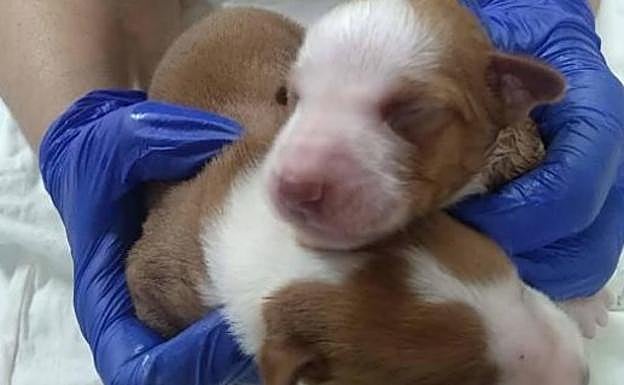 Rescatan a dos cachorros abandonados dentro de un contenedor de basura