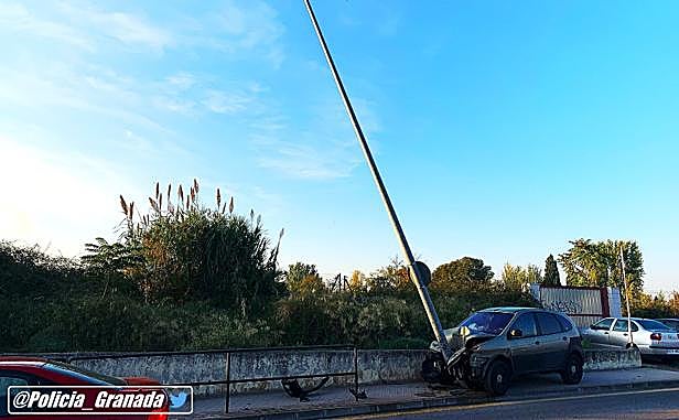 Choca contra una farola en el Camino de Purchil y obliga a cortar el tráfico dos horas
