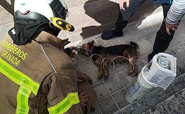 El oxígeno facilitado a un perro en un incendio del Zaidín le permite sobrevivir