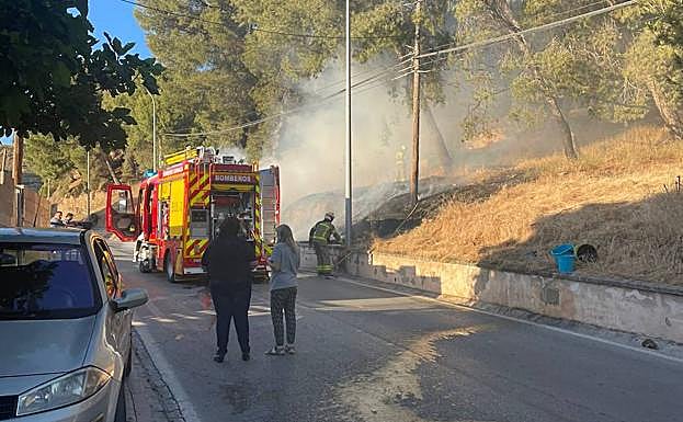 Los vecinos tuvieron que salir de sus casas con cubos para intentar que las llamas no alcanzasen a un paraje que ya se vio afectado por un incendio la semana pasada