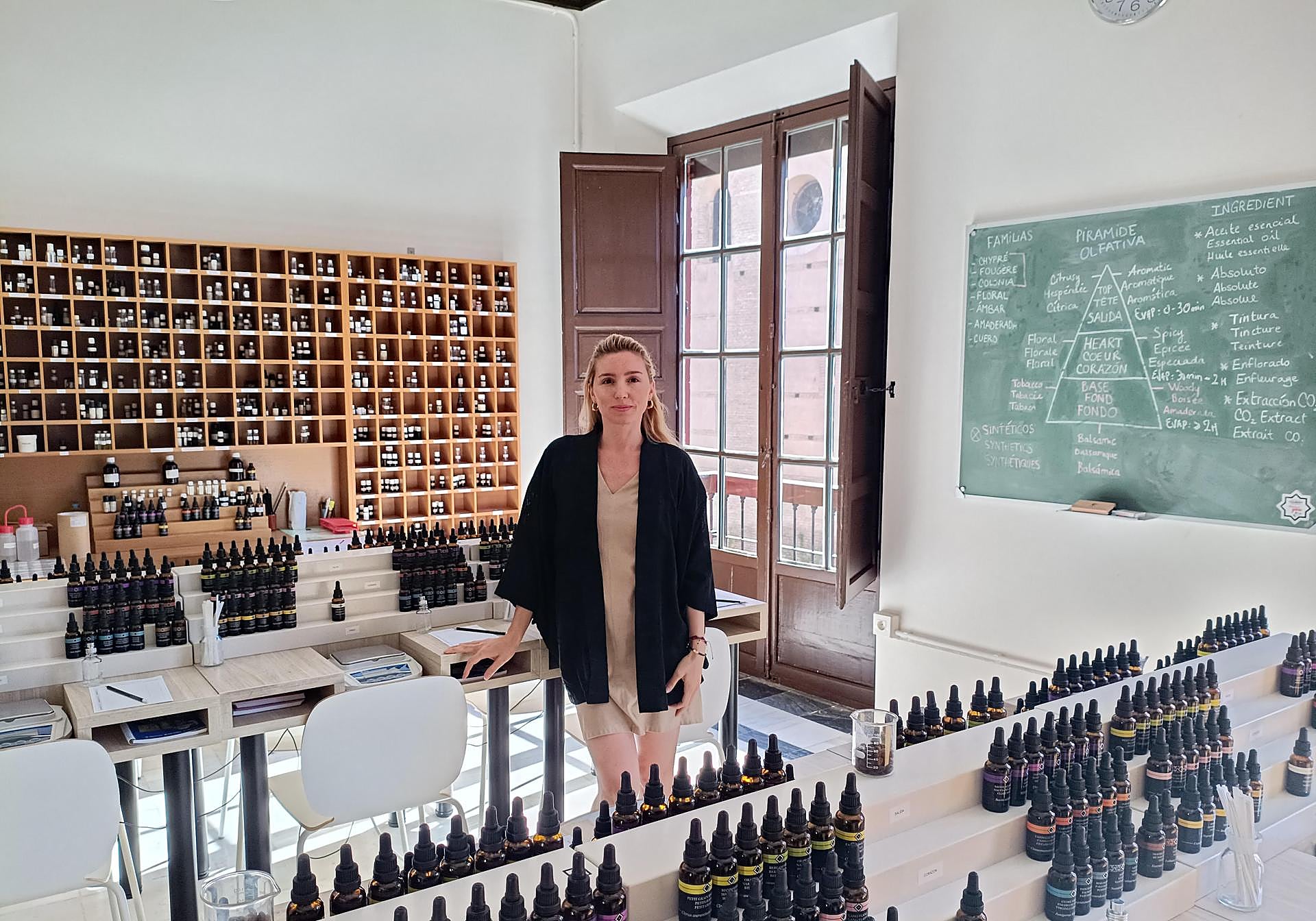 La perfumería natural del Patio de los Perfumes «no lleva nada sintético. Es personal pero poco invasiva y la puede llevar mucha gente sin ofuscar a nadie. A veces, la perfumería es potente y no te apetece oler a la persona que tienes a tu lado. Hay gente que se pone demasiado perfume y eso me parece una falta de respeto». Por ello, «intentamos que nuestros perfumes se difuminen en el cuerpo y el olor no sea tan agresivo».