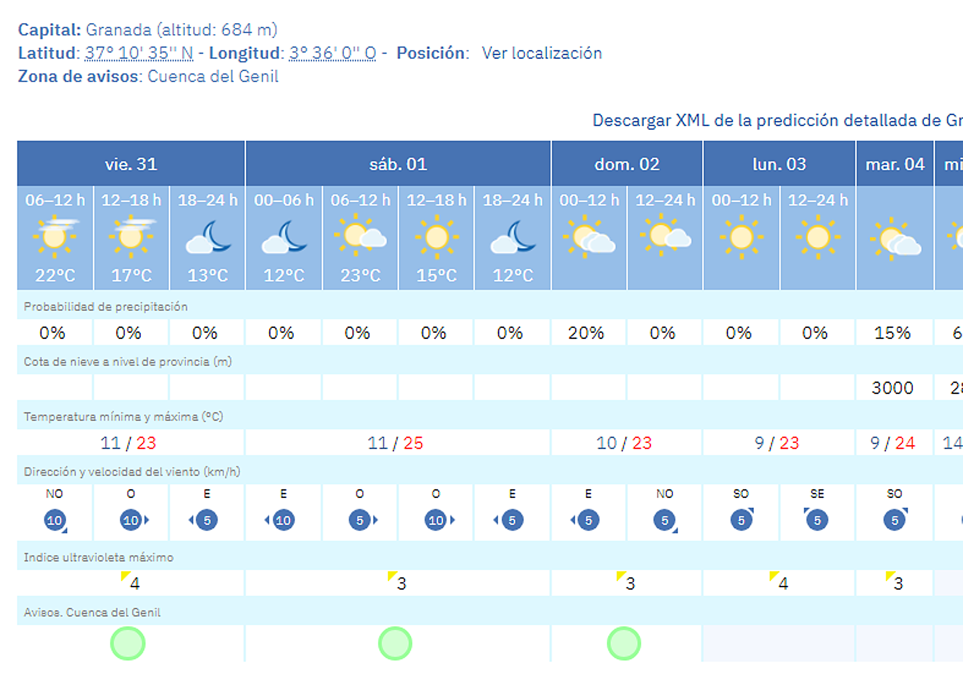 Aunque buena parte de España sigue sufriendo los efectos de la borrasca atlántica, con cuantiosas lluvias y otros fenómenos meteorológicos adversos, la situación es bastante ... diferente en Granada. Y lo seguirá siendo durante algunos días más, ya que tanto este viernes como el fin de semana la estabilidad será la protagonista en la provincia granadina. Sin embargo, ya hay fecha para un nuevo cambio de tiempo con el que regresará la lluvia y bajarán las temperaturas.