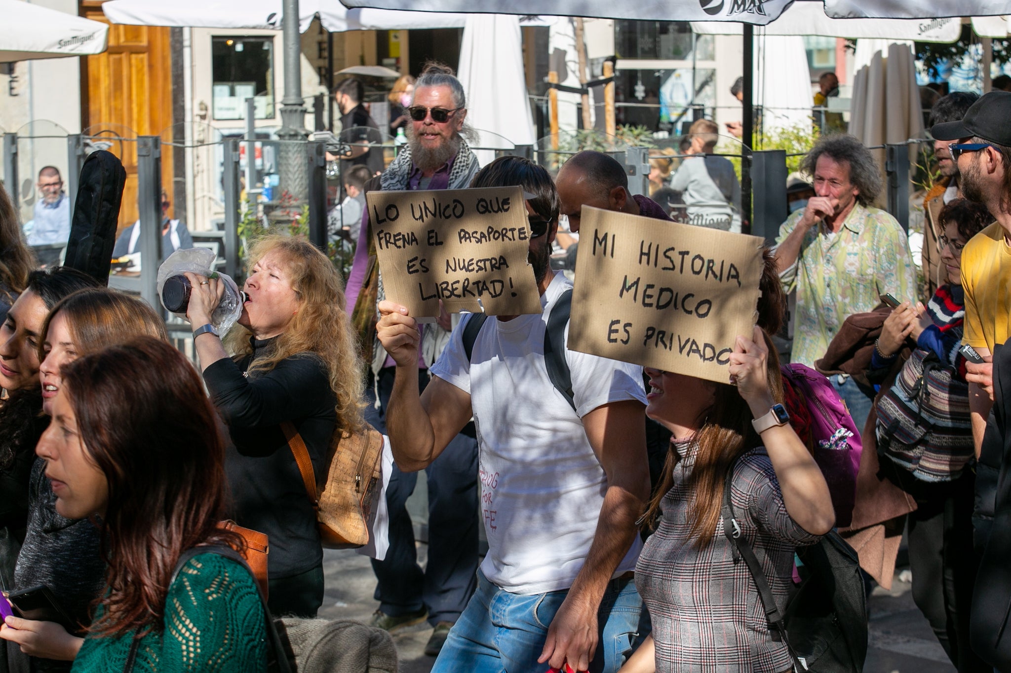«Todo es mentira» o «Pasaporte covid ilegales» son algunas de las consigas que se han podido leer en los ditintos carteles que portaban los asistentes.