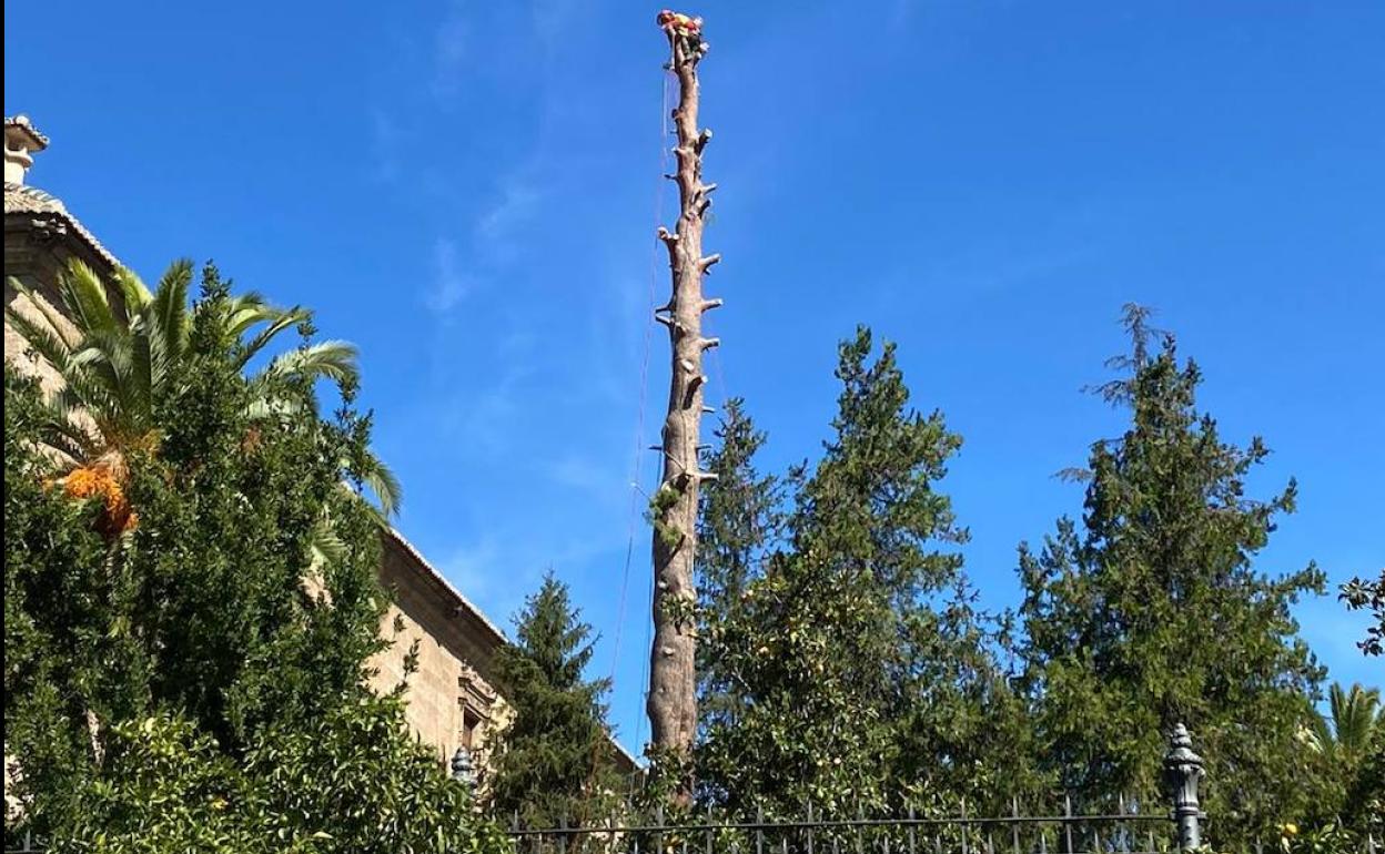 Polémica por la tala de un pino de 25 metros en el recinto del Hospital Real