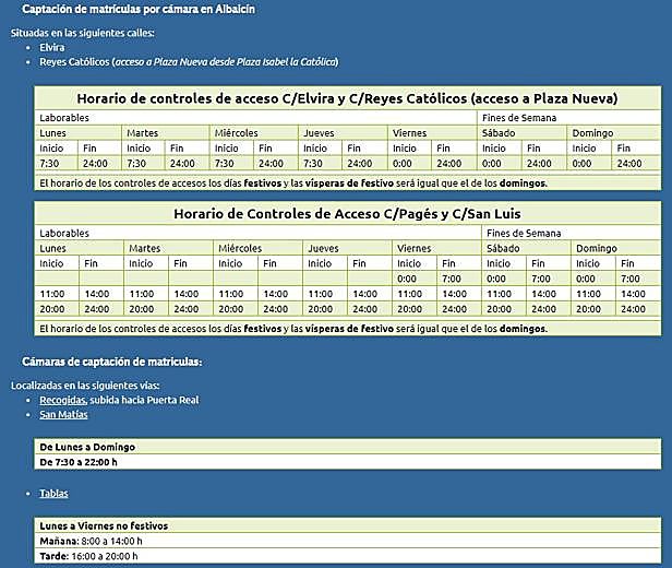 Según recoge el área de Movilidad en su página web estas son las cámaras que, a día de hoy, están en funcionamiento y sus respectivos horarios.