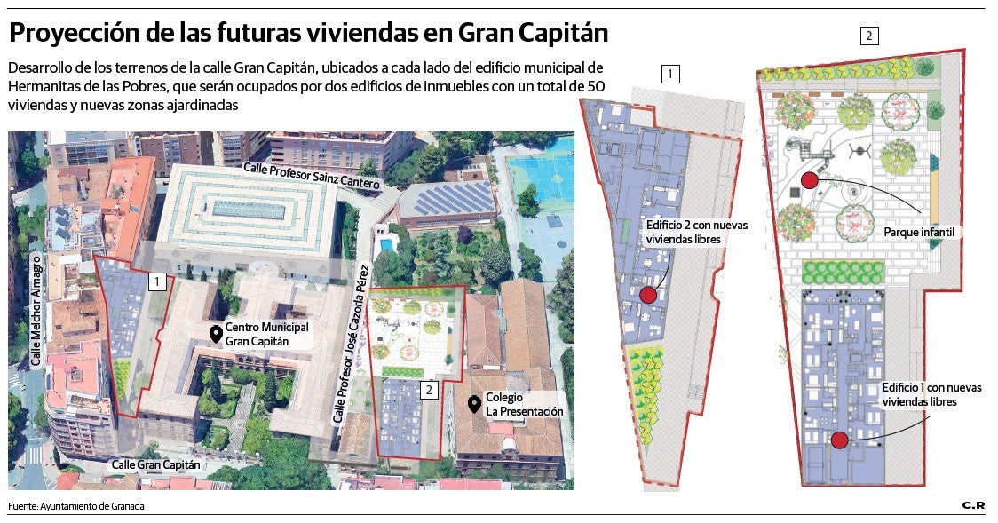Como confirman fuentes municipales a este periódico, en los últimos meses se ha afinado el proyecto, que finalmente se ha cerrado con unas 50 viviendas, 20 de las cuáles se ubicarán en la parcela situada al lado del GUL de Urbanismo y el Colegio de La Presentación y las restantes en los terrenos que dan a la medianera de Melchor Almagro. Las dos promociones serán de vivienda libre, con opciones de 1, 2 y 3 habitaciones con 1 o 2 baños que están despertando «un gran interés», según las fuentes consultadas por IDEAL.