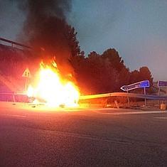 La persecución a 200 por hora de un supuesto 'narco' acaba con el incendio de su coche