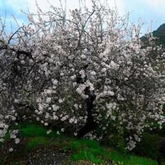Los almendros en flor dan un atractivo colorido especial a los campos. Los almendros, avellanos, duraznos y algunos ciruelos florecen primero y nos enriquecen con su belleza cuando los demás árboles aún están desnudos y no han brotado. En la Sierra de la Contraviesa alpujarreña, en Los Guájares y en el Valle de Lecrín, al igual que sucede en otras zonas con almendros, los campos comienzan a transformarse a primeros de año en un inusitado paisaje blanco y rosado.