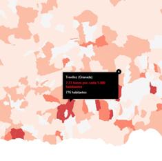 ¿Cuáles son los pueblos de la provincia de Granada con más bares por habitante? ¿Y de España?