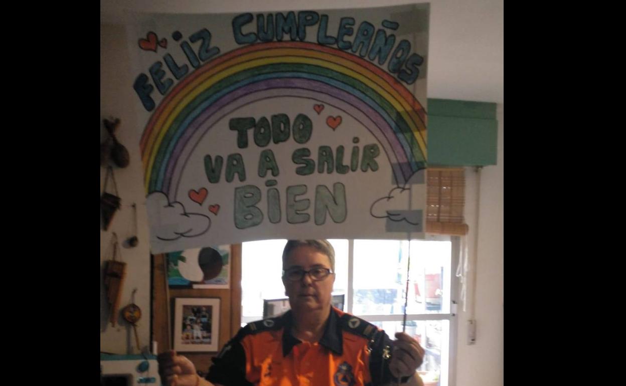 Protección Civil acudió con música y una pancarta para amenizarle el día