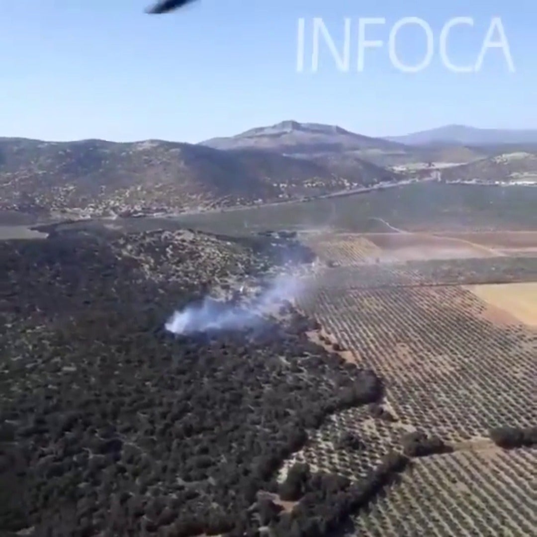 Labores de extinción de un incendio declarado en paraje Sierrecilla de la Nava de Iznalloz
