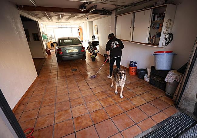 Nacho, en la calle Los Claveles, se afana con un rastrillo para retirar el barro, que ya por fin se ha solidificado, de las esquinas de la entrada a su cochera. Le ayuda su hermana, Elo, que tiene entre las manos un escobón ya echado a perder de tanto limpiar la riada. «Las calles están todaS cuesta abajo y en esta zona hay multitud de viviendas unifamiliares que en el bajo tienen la cochera. Ahí es donde ha entrado el agua con el barro, y es lo que se ha tenido que limpiar».