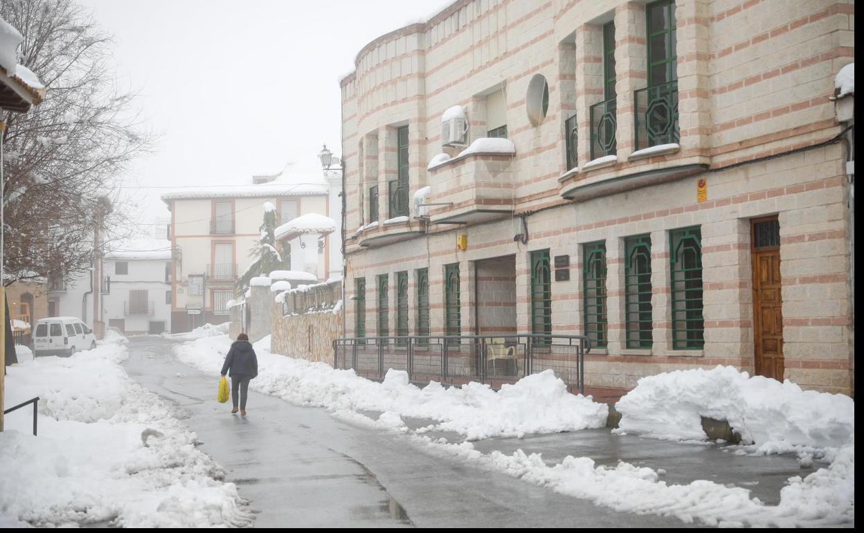 Las escaleras del parque son una rampa blanca. Un camino abre paso al consultorio, al que los médicos han podido llegar tras el corte de carretera del lunes. El agua de la fuente fluye entre el hielo. Pero el pueblo ya recupera el pulso. Este miércoles, según la Agencia Estatal de Meteorología (Aemet) ya no habrá precipitaciones en forma de nieve. El pueblo está a una altura de 1.239 metros y la cota se situará en 1.300 durante la madrugada, cuando sí hay previstas lluvias, y subirá a 1.500 metros hacia mediodía. La lluvia no volverá hasta la tarde del viernes.
