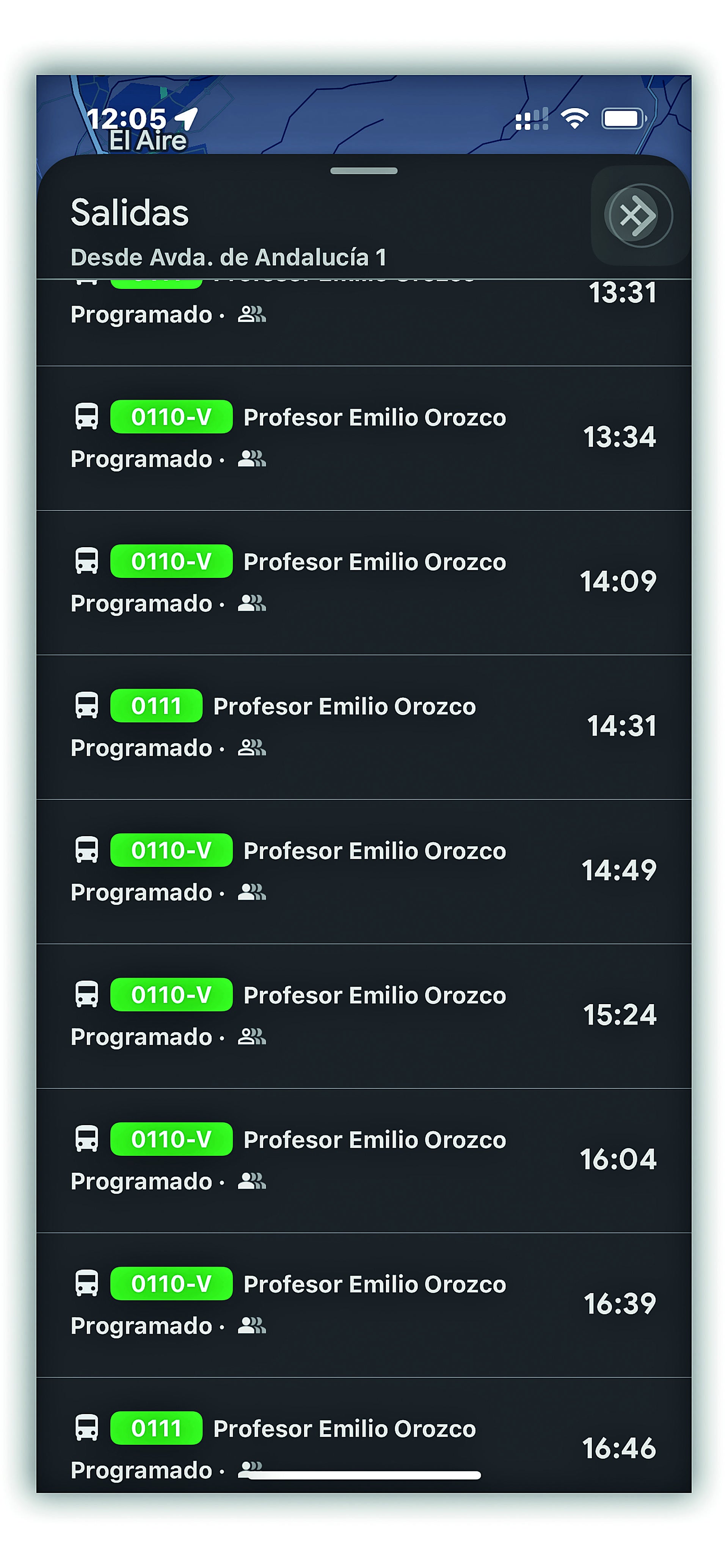 «El 121 siempre llega a las y media. En unos treinta minutos aparece el siguiente, ya verás», explica. Si le preguntas, nunca miró Google Maps para predecir este resultado, ya tiene marcado a fuego el que aparece en el horario publicado por el Consorcio de Transporte. Efectivamente, llega a las y media, y gente que parecía estar descansando en la acera de enfrente en la sombra, se levanta a hacer cola. «Nunca hemos tenido problemas con estos buses, yo cojo siempre el 305», dice uno con prisas.