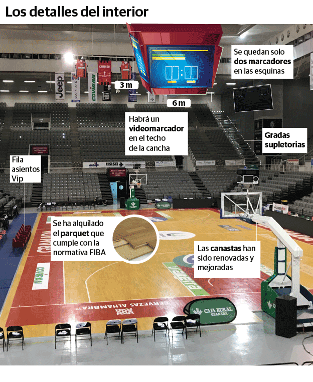 También cuenta el Palacio de los Deportes de Granada con un nuevo videomarcador de 6x3 metros por cada lado colgado en el centro de la pista. Los actuales marcadores digitales, colocados en las esquinas y que llevan funcionando desde 2007, también han sido sustituidos, aunque en este caso ocuparán dos esquinas y no las cuatro, al contar ya con un marcador central para que espectadores y jugadores puedan estar en todo momento informados sobre las estadísiticas.