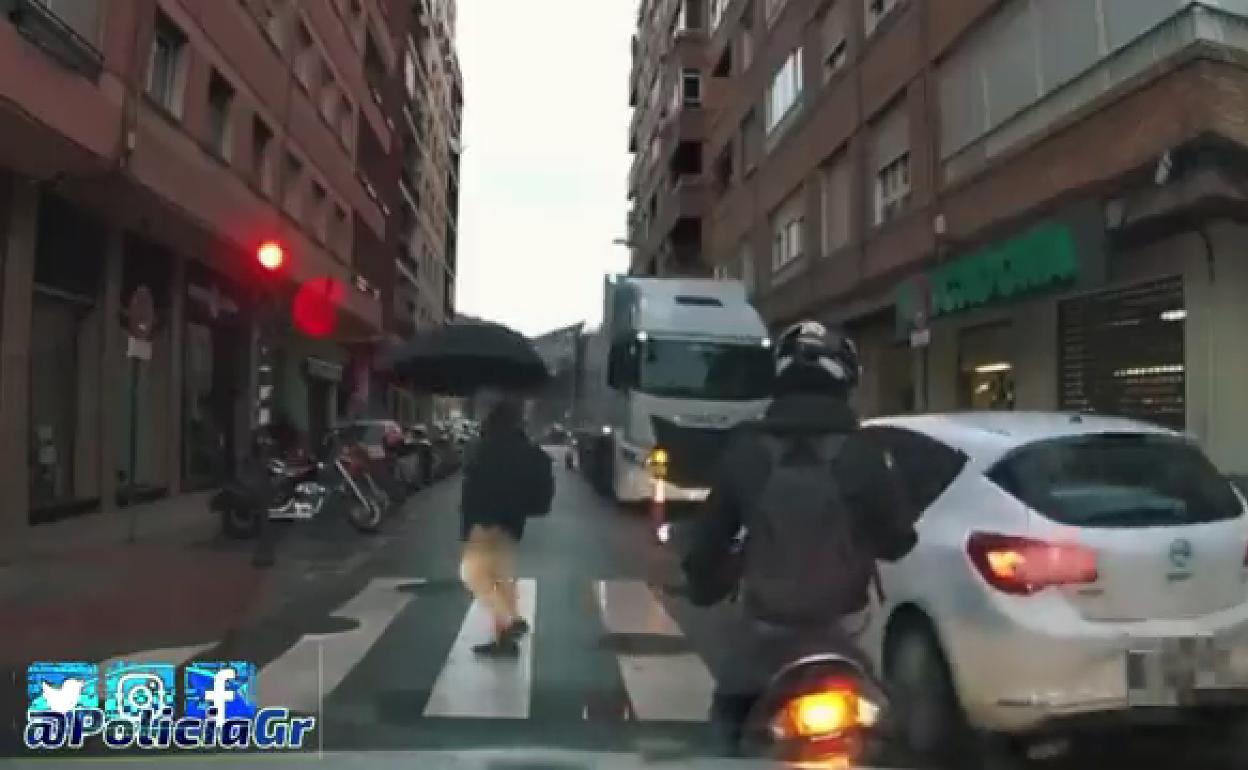 Se salta un semáforo y circula por la acera en pleno centro de Granada