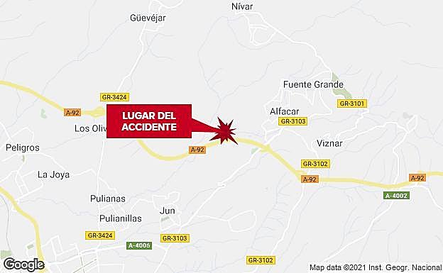 Dos muertos al chocar sus vehículos y volcar en la A-92 en Alfacar