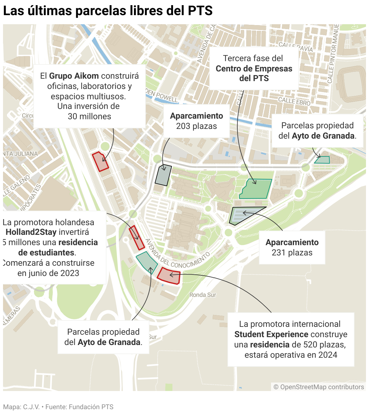 Las últimas parcelas libres del PTS: ¿Qué falta por construir?Cuatro solares municipales, la ampliación del edificio de empresas de la Junta y dos grandes proyectos empresariales que estarán en marcha este año culminan el Parque