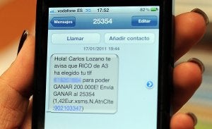 Entre la guasa y la mala leche anda el personal haciendo publicidad del nuevo programa de Carlos Lozano, el concurso 'Rico al instante', que ... emite Antena 3 desde hace dos semanas, los domingos, poco antes de medianoche. A esa hora la concurrencia no es mucha, pero no habría conseguido más notoriedad ni emitiéndose a las diez de la noche. Porque si usted tiene un móvil tiene también muchas posibilidades de recibir un 'sms' del programa, bastantes más que de ganar el jugoso premio que le ofrecen: 200.000 euros por enviar un mensaje de texto por el 'módico' precio de 1,42 euros y que le mete en el bombo de posibles concursantes -hay que ir a la tele a concursar-. La empresa responsable del espacio, ZedTv, ha hecho en las últimas semanas envíos a medio país y alguno se ha cansado de borrarlos. La Agencia Española de Protección de Datos ha recibido una treintena de quejas, entre ellas la de la Confederación Española de Organizaciones de Amas de Casa, Consumidores y Usuarios (Ceaccu), que denuncia el «posible spam» y lo que entiende como una «práctica agresiva». Preguntados por esta cuestión, defensores de los consumidores la califican de «abusiva», pero la cuestión es otra: ¿Es legal? «Sí lo es, o al menos no es ilegal», dicen.