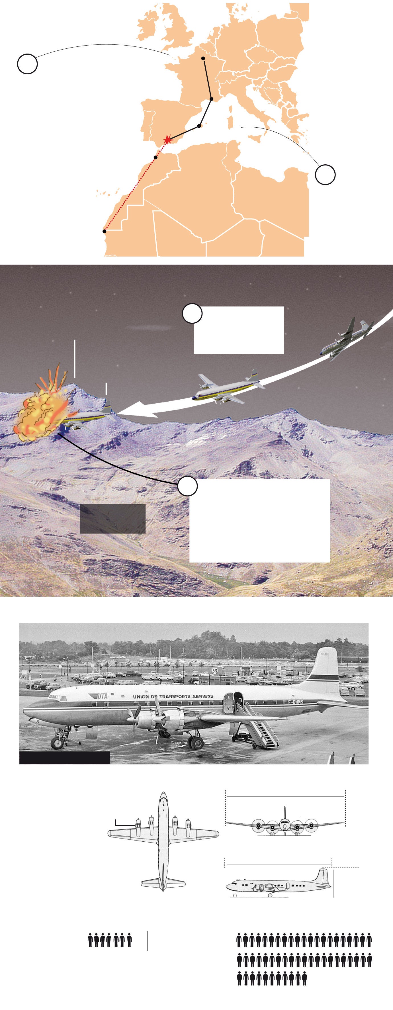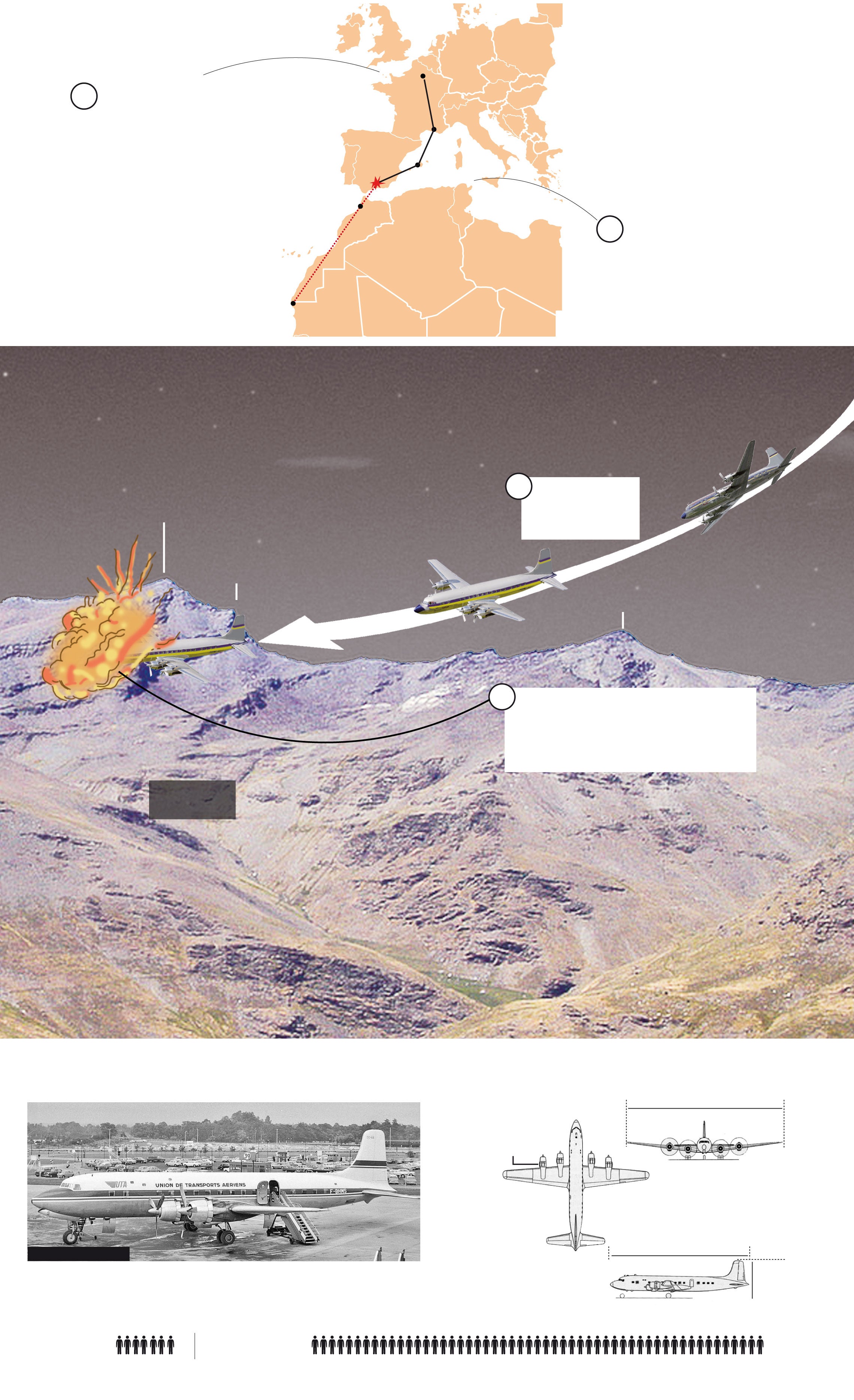 El avión, que cubría el trayecto de París a Nouakchott, en Mauritania, con escalas en Marsella y Palma, despegó del aeropuerto balear sobre las tres de la madrugada, pasó el radiofaro de Ibiza y el último reporte que ofreció fue al cruzar la base aérea de San Javier, en Murcia. A las cinco menos cuarto los operadores de radar del Escuadrón de Vigilancia Aérea de Constantina perdieron la señal emitida por el avión. Sobrevolaba Sierra Nevada. «Cuando despegó, el servicio de vuelo de Palma le ofreció altura nivel de vuelo 140, eso es 14.000 pies», explica Lozares, «pero el piloto decidió, y Palma le dio permiso, bajar a 10.000 pies que son unos 3.050 metros». El pico de la Alcazaba está a 3.369 metros. El avión no había declarado ningún tipo de problema a bordo, pero por algún motivo se desvió y se estampó contra la Alcazaba. «El que lo conozca sabe que es una pared y el avión se desintegró totalmente», concluye Lozares.