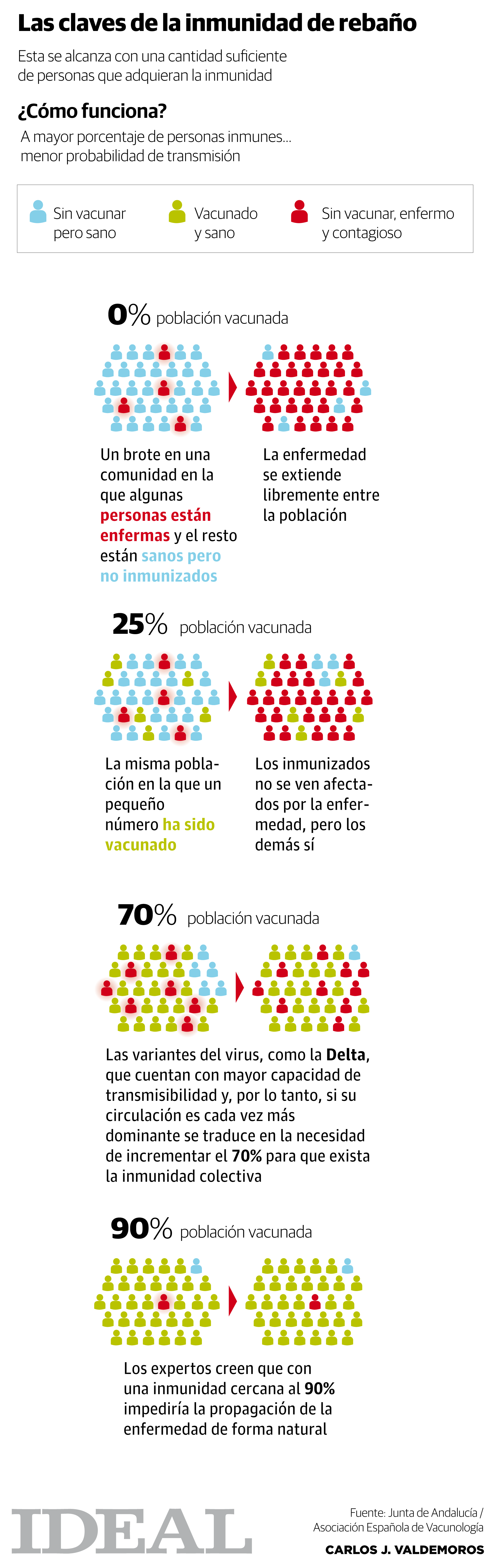 Esta circunstancia supone retrasar en 39 días una inmunidad de grupo que se hubiera logrado el 26 de agosto de no haber existido la variante Delta. De acuerdo a estos cálculos, la provincia de Granada estaba a tan solo 15 días de inmunizar al 70% de su población a través de las vacunas, a lo que se habría sumado el porcentaje de aquellos que hubieran desarrollado inmunidad natural tras haberse contagiado.