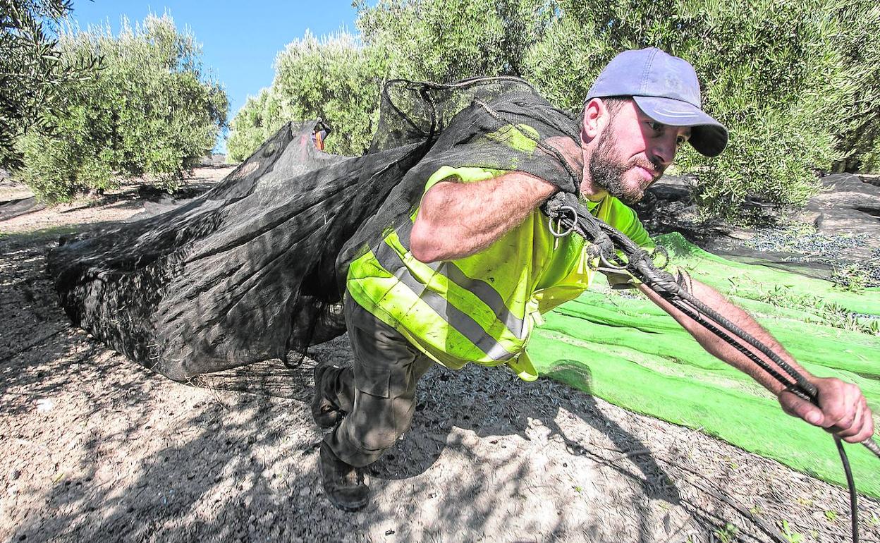 Tras cesar los ataques, se peina el campo de un extremo a otro de manera concienzuda. Cuando el fruto está sobre las redes, toca tirar de ellas para acercarlas a los tractores.Se cargan a pulso. Cientos de kilos y a veces cuesta arriba. Es un trabajo completamente manual. Artesano. Como siempre ha sido. Y para acabar, a la cooperativa a descargar. Pero ahora en vez de burros con tractores y palas. «Cuestan entre 70 y 100.000 euros.Y un 'vibro' 200.000. ¿Tienes máquinas? pues a construir una nave para guardarlas. Y así con todo», apunta Antonio, que a su juicio el campo es una «ruina» tal y como se está vendiendo el aceite ahora.