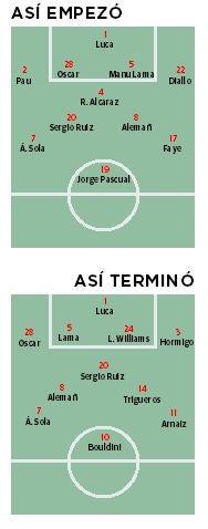 En ese giro, Pacheta ya había quitado a dos de sus futbolistas más importantes, Faye y Arnaiz. En el último tramo, repescó a Loïc en defensa, aunque para cerrar con cuatro atrás, Oscar de lateral derecho. También apareció Bouldini, físico arriba ante un Pascual que no tuvo tino.