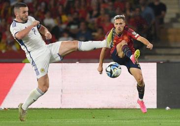 Por mucha dureza que quisiera mostrar, ningún escocés parecía esperarle. Patterson intentaba descifrar sus amagos sin irse expulsado y Porteous casi manda hacia su propia portería uno de sus clásicos centros con el exterior. Buscó a Morata en un par de ocasiones, pero en la primera no estuvo preciso él con el envío y en la segunda no lo estuvo el delantero al remate. Tras el susto por el gol anulado a McTominay, De la Fuente varió el plan y con la entrada de Jesús Navas le pidió que apareciese por dentro para que este y Fran García ocupasen toda la banda como laterales. Fue entonces cuando desapareció un poco del partido, dubitativo ante los automatismos de la Selección, pero sí que fue testigo privilegiado del gol de Morata a genial centro de Navas y también luego del de Sancet, sin intervenir en las jugadas.