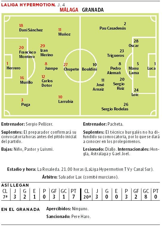 No será coser y cantar, pues por delante se aproxima un desafío de altura. El conjunto de Pacheta afronta el primer derbi de la campaña ante un Málaga lanzado en la clasificación y que no conoce aún la derrota. Encima, en La Rosaleda, campo maldito para los rojiblancos y capaz de decidir el resultado, como señaló el técnico burgalés en la previa. De hecho, el Granada tan solo ha vencido en uno de los últimos nueve duelos disputados allí desde su vuelta al fútbol profesional, justo hace siete años.
