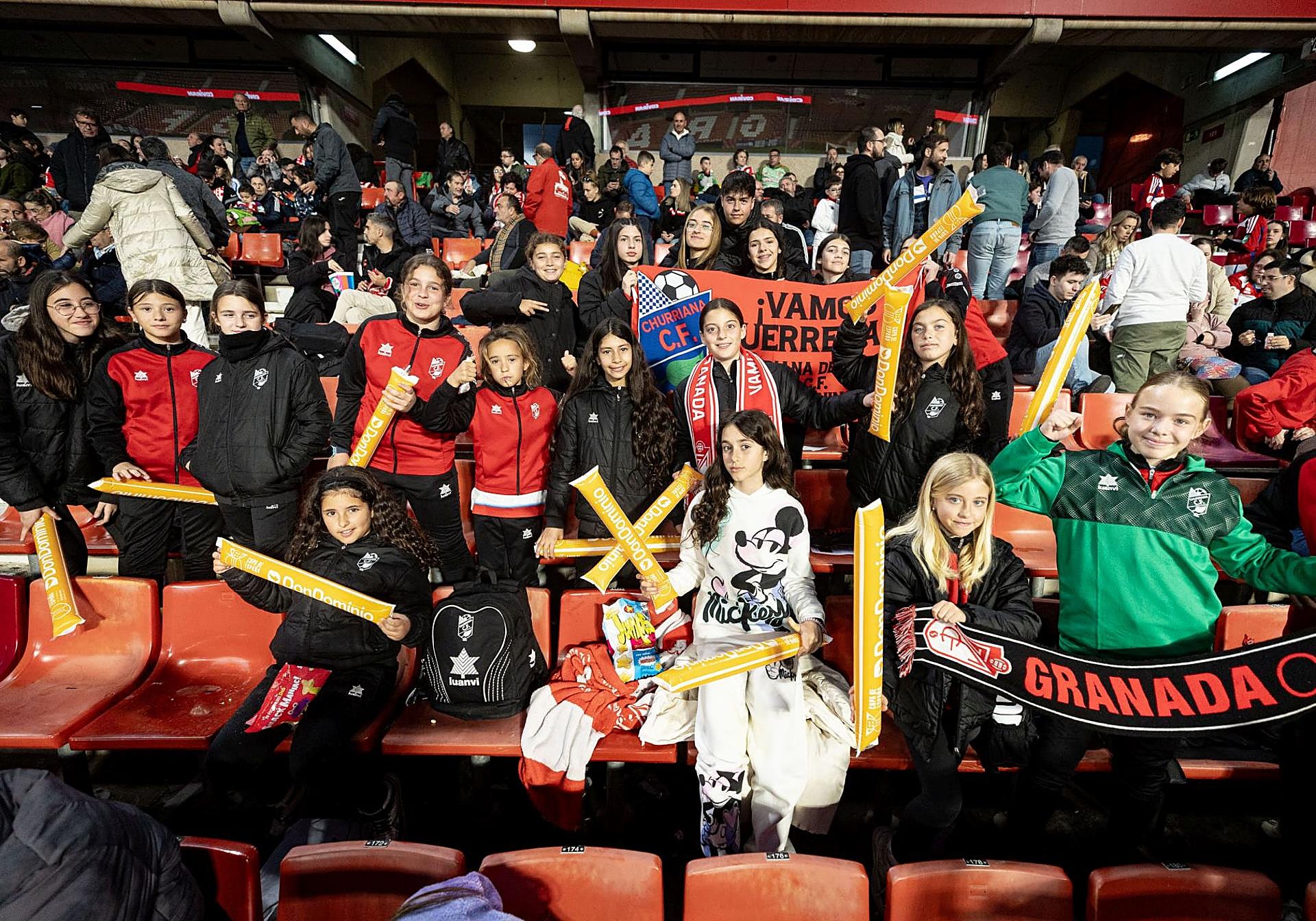 Los Cármenes es el mismo estadio de siempre, y a la vez uno muy diferente. Sobre el césped no hay hombres, sino mujeres, y en las gradas reina un ambiente aún más festivo del habitual. El que impregnan los familiares y amigos de las futbolistas del Granada que plantan cara a todo un Atlético de Madrid en las mismísimas semifinales de la Copa de la Reina. También ellos animan como si les fuera la vida en ello y se enfadan con rivales y árbitros, pero desde el apoyo incondicional a sus jugadoras. Esas a las que también admiran como ejemplos a seguir cientos de niñas de clubes de la provincia como Arenas, Churriana, Cájar, Zaidín o La Zubia que aspiran a protagonizar gestas como las suyas en el futuro. «Son una inspiración; soñamos con seguir sus pasos», confirman a IDEAL.
