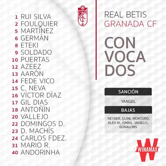 La ausencia del centrocampista francés es la principal novedad de la lista del Granada para enfrentarse al Betis, a la que regresa Antonio Puertas tras cumplir sanción