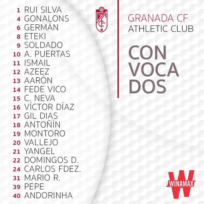 Maxime Gonalons es la principal novedad de la convocatoria de 22 hombres de Diego Martínez para el partido que este domingo enfrentará al ... Granada con el Athletic de Bilbao, el último de la temporada con opciones de jugar en Europa en juego. El centrocampista galo regresa a una citación tras perderse los nueve partidos anteriores después de sufrir una lesión fibrilar en el oblicuo abdominal en el primer encuentro de la reanudación contra el Getafe en Los Cármenes, que no consiguió terminar.