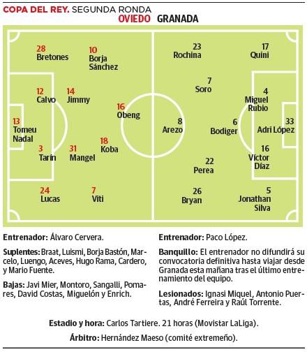 Prueba de madurez al Granada en Oviedo, allí donde se acabó el crédito de Karanka pese a jugar contra un jugador menos, ahora con los menos habituales antes de eneroLos futbolistas menos habituales y por tanto más hambrientos (o eso se supone) del Granada saltarán a jugar este jueves en el Carlos Tartiere de ... Oviedo con el pase a los dieciseisavos de final de la Copa del Rey en disputa. Lo hacen, además, con el mercado de fichajes de invierno a tan solo unos días de abrirse, aunque Paco López trató de descargarles de esa presión antes del encuentro. Los rojiblancos vuelven a Oviedo, allí donde ya jugaron esta temporada el pasado 6 de noviembre con una vergonzante derrota al medirse desde la primera parte a un rival con un hombre menos. Aitor Karanka no sobrevivió a aquello. Ahora, y ante un bloque aún más trabajado por el pragmático Álvaro Cervera, el Granada debe mostrar la madurez y la mentalidad ganadora adquiridas con su nuevo entrenador.